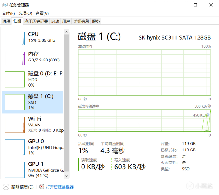 1、首先检查永劫无间的安装位置,打开任务管理器——选择性能——磁盘;