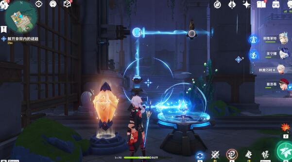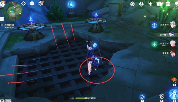 3、长按元素战技打开开关,从闸门跳下去来到解谜机关处,使用机关开启后跳下去来到最下层击败敌人。