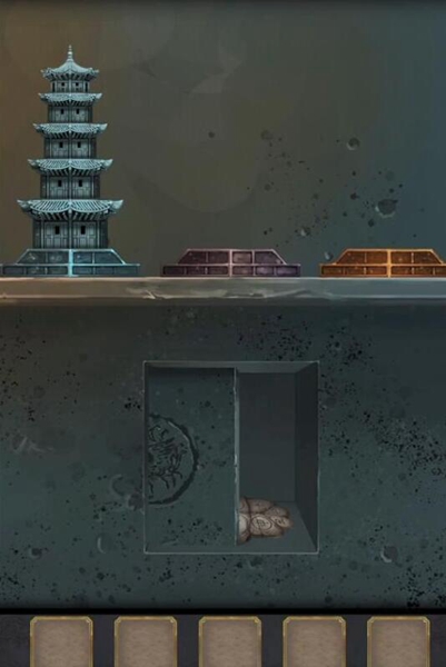 2、如下所示调整位置获得【雕花石佩一】,探索找到【半块青砖】,用砖砸开裂缝得到【雕花石佩二】,在下图位置放下两个石佩。