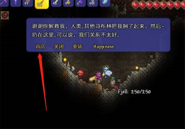 4、最后我们点击哥布林商人对话完成解绑即可看见商店。