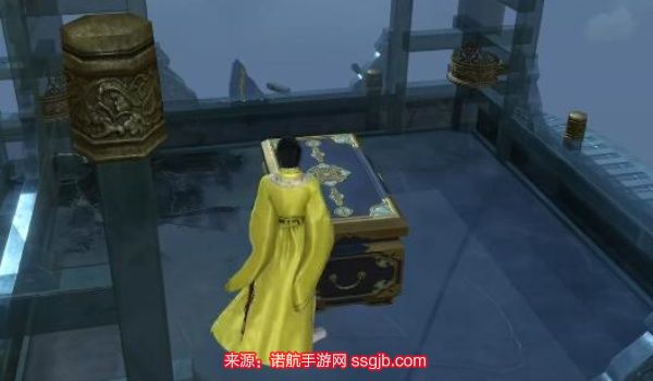 4、随后从小亭子向下看即可看见宝箱,然将宝箱打开即可。
