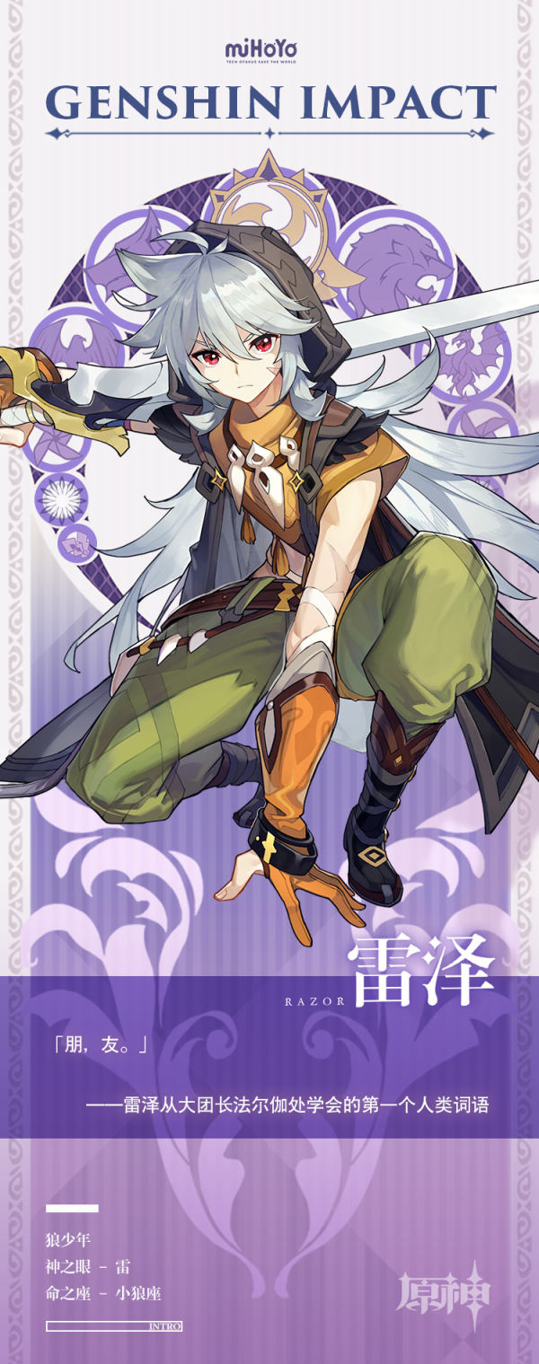 原神狼崽子雷泽是可莉的哥哥,小正太,取下帽子是一名帅气的少年,雷泽虽然到后期有点乏力,依然有一批喜欢他的玩家,为了方便喜欢雷泽的旅行者收集图片。