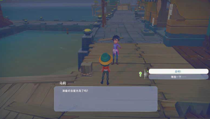 1、在造好星光岛的船后,马莉会找到我们,邀请我们一起去星光岛冒险,之后我们去港口与马莉回合一起去星光岛。