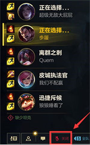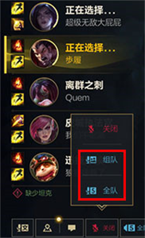 3、在游戏中开始对局,点击如图位置的麦克风按钮,选择全对或者组队。
