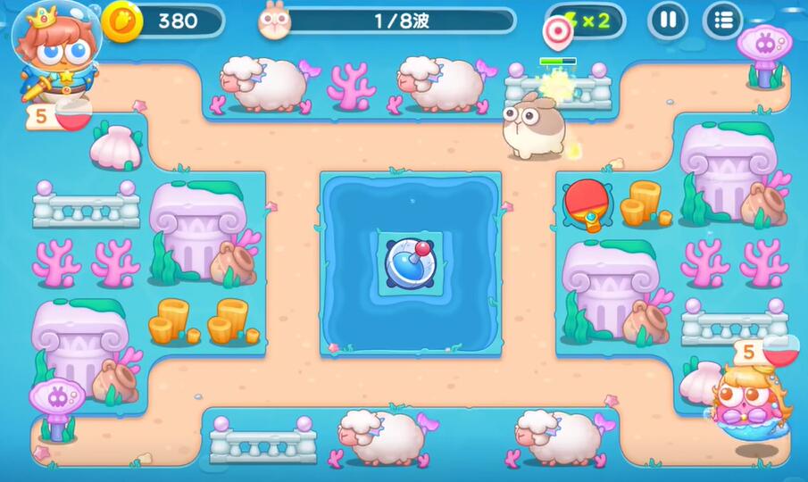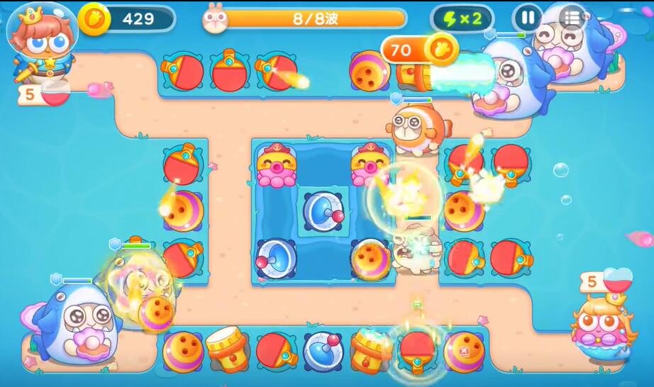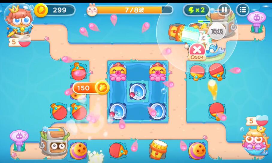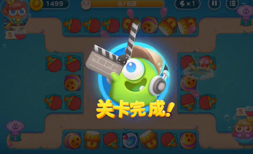 4、清理掉中间的宝箱,得到两个章鱼并且升级,对上方的障碍物进行输出。