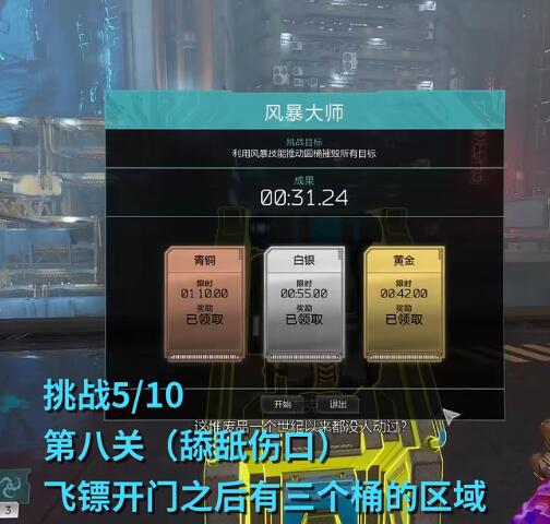 挑战五:利用风暴技能tuido圆桶摧毁所有目标。
