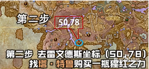 3、去雷文德斯(50.78),找NPC塔特鲁购买猩红之力;(用材料兑换,而不是金币);