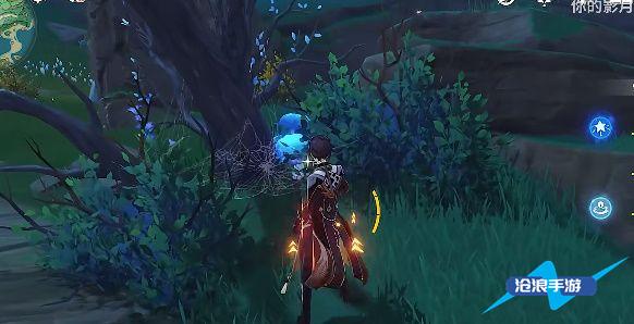 到达传送点以后,往右侧移动,就能在大树下看到幽灯蕈。