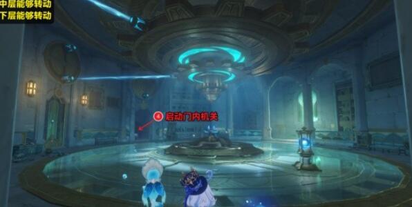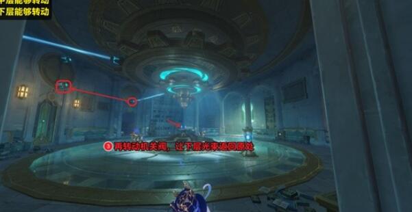 11、首先需要转动机关阀,让第2、3层光束同时转动,并打开右侧的门。