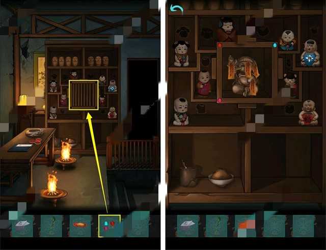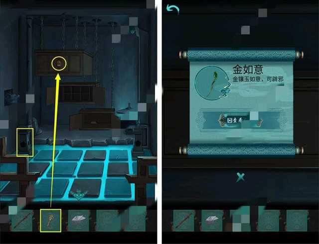 13、点击左边石柱,柜子下降。用钥匙打开,获得金如意。