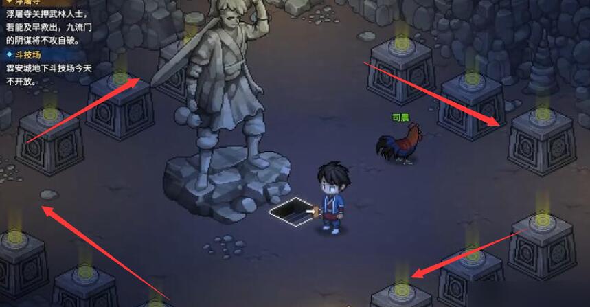2、然后我们点击附件的12个机关,触发剧情并会出现一个地洞。