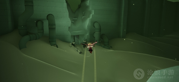 2、然后玩家就到达了墓土大厅,按照箭头的方向,玩家向抽水桶飞下去。