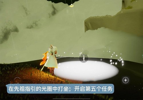 2、根据先祖的指引,来到光圈的位置打坐,即可开启第五个任务;