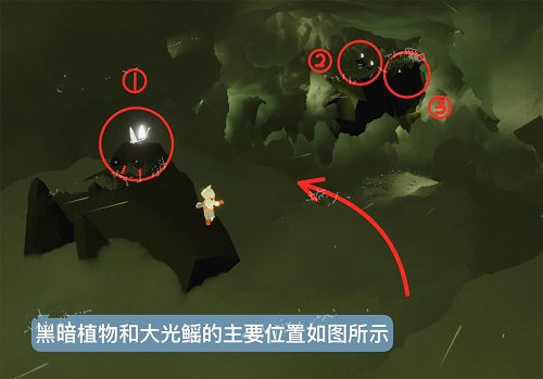 3、这个任务需要收集黑暗植物和大光鳐,位置如图所示;