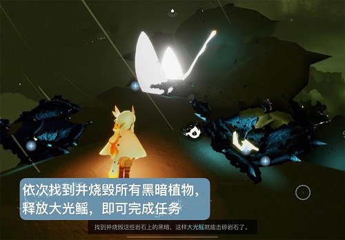 4、靠近黑暗植物,依次烧毁释放大光鳐,即可完成任务。