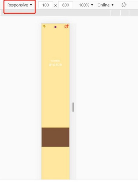 5、点击左上角的设置,设置成【Responsive】,分辨率更改为100X600,回车。