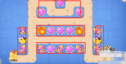 2、在最上面放置一个魔法球,开始清理两边障碍物,空出格子放置魔法球,继续清理