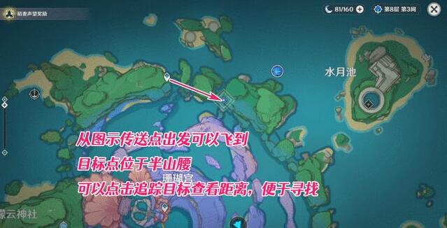 可以从传送点飞到半山腰,可以点击追踪目标查看距离。
