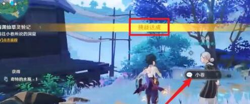 拿到水源后,回到望泷村找小卷婆婆,即可完成挑战。