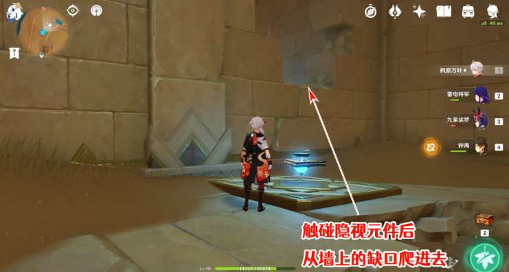 7、拟构基石会构建出一个隐视元件,触碰元件后,旁边的墙上就会出现一个缺口,从这里爬进去。