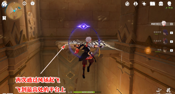 8、后面是一个风场,我们通过风场飞到上层,拾取上面的元能光锥,然后从墙角缺口处下去。