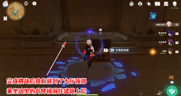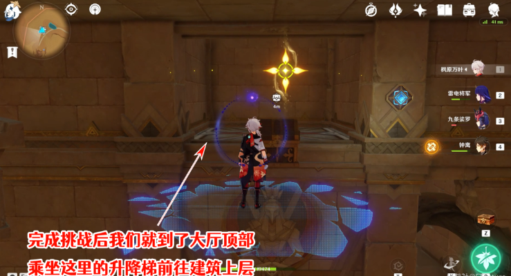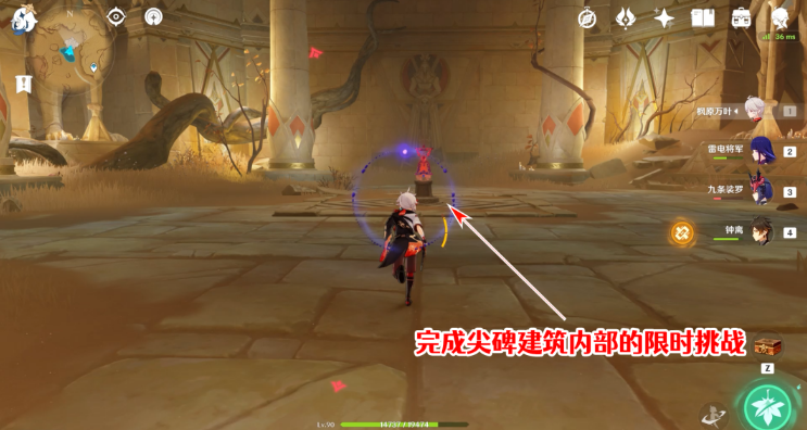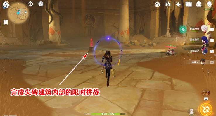 17、直接就到了尖碑建筑内部,可以看到场地中间有一个限时挑战,开启挑战即可。
