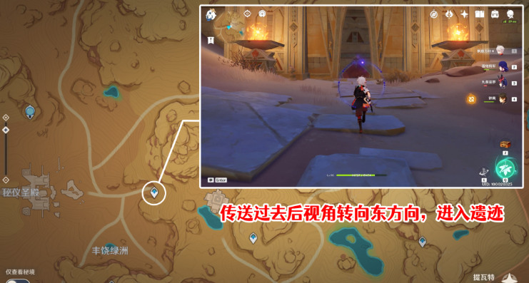 13、传送到丰饶绿洲东北边的传送锚点,之后视角转向东方向,从这里的通道进入地下。