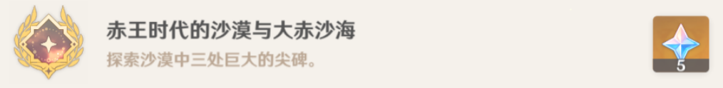 以上就是这篇文章有关原神赤王时代的沙漠与大赤沙海攻略的所有内容了,这样就能够获得成就了。更多游戏相关资讯内容,敬请关注手游网。