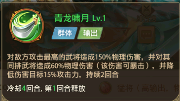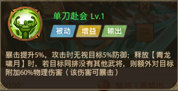 一、【武将概况】万人为翰墨,无一曹思王。万人握干殳,无一关云长。定位:猛将,高输出的物理攻击类型猛将。二、【技能介绍】1、主动技能单排群攻技能,主要针对对面最高输出