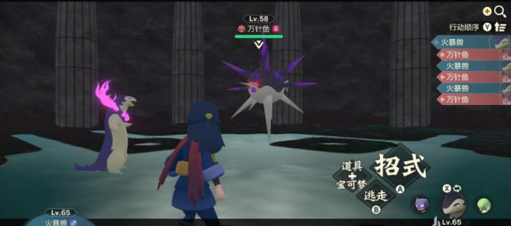 我们前往红莲湿地,直接到立志湖中触发剧情进入洞窟击败Lv58万针鱼头目,属性恶和毒,弱地面,毒、幽灵、草、恶伤害减半,电无效。击败万针鱼用镇宝丢中亚克诺姆,强制性三次丢不中,三次选择不放弃,最后会强制扔中,从亚克诺姆获得亚克诺姆之牙。
