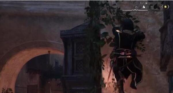 2、接着向前走顺着大楼一直向上爬来到最顶楼上可以找到谜团。