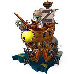 发射海盗小鬼僵尸穿越你的防线。最终大炮爆炸时投下多个海盗小鬼僵尸。