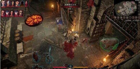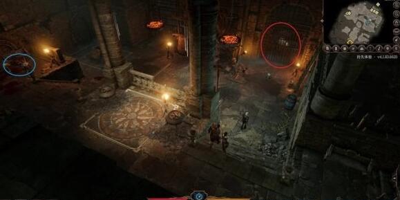 7、然后我们来到此处的监狱房间,需要甘宽消灭左侧篮圈的地精,然后才去消灭其它怪物,红圈是大德鲁伊。