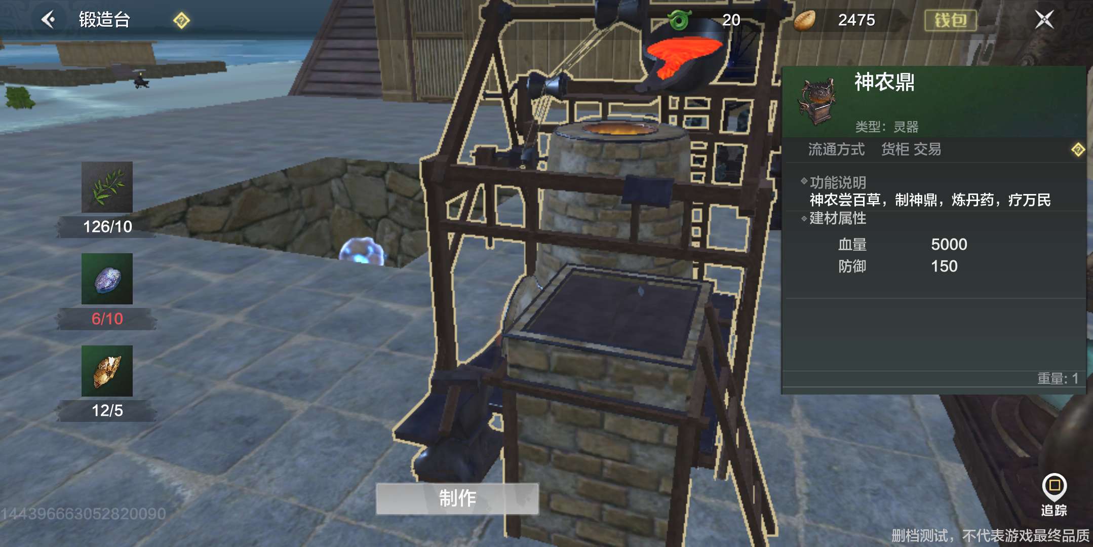 最后一步 所有的前置任务完成之后,还需要准备神农鼎的制作材料,到锻造台制作神农鼎。