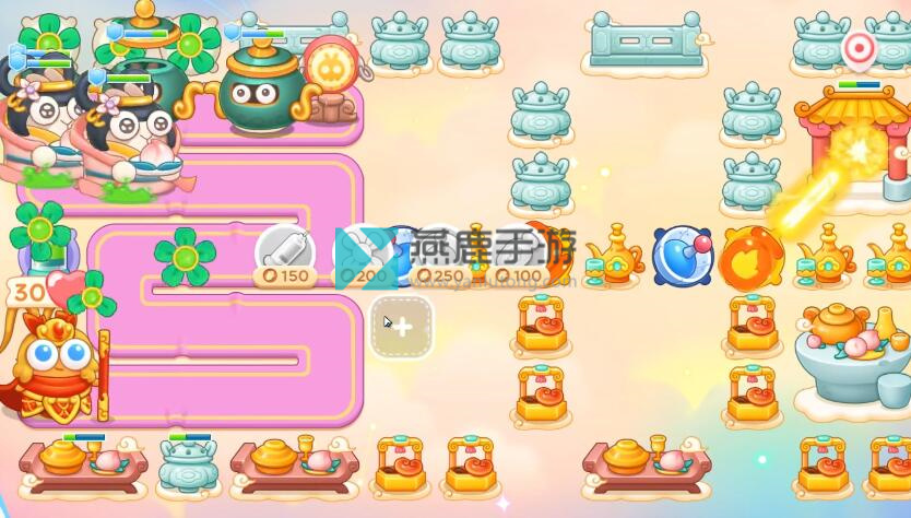 4、火炮继续打萝卜门和石桌,接着在左上买风扇。