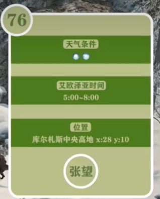 需要在晴朗天气的5点到8点来到库尔札斯中央高地坐标为x:28,y:10的位置。