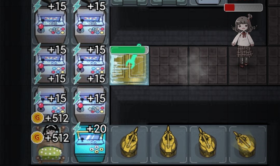 2、通过生产的金币,我们可以升级门和武器,使用强大的科技对抗鬼。