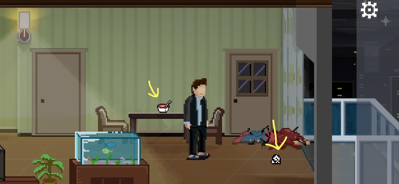 地上有一纸团,上书“好像有毒...”,桌上的排骨汤是解药,拾取排骨汤拖动到妻子身上。