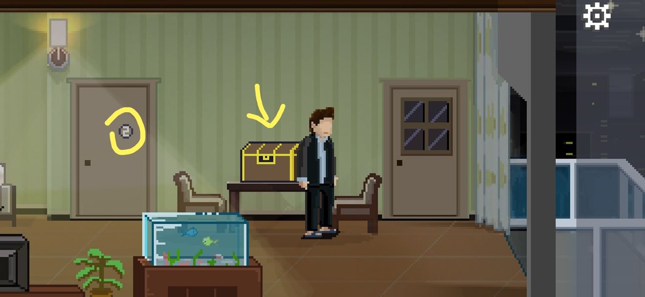 宝箱需要密码,根据墙上的提示,密码是525,拾取橘猫,拖动到妻子身上。