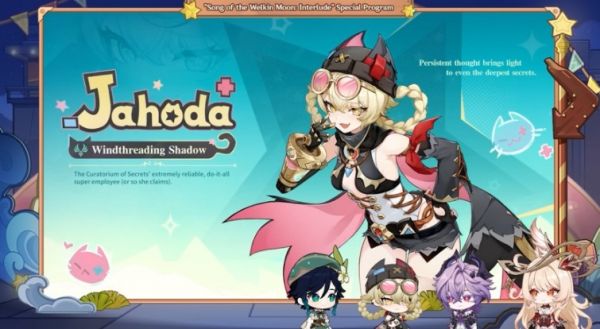 另一位新角色「雅珂达」神之眼为风,武器使用弓。雅珂达是「秘闻馆」最可靠的万能员工(自称),她除了能治疗队伍,还能吸收元素打出对应伤害。