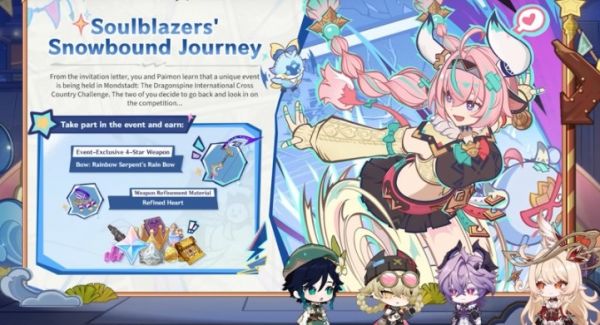 月之三版本也将举办更多的活动与庆典。在「炽魂斗士的雪界之旅」中,旅行者将再次来到龙脊雪山,体验以冬天为主题的迷你游戏。参加活动即可获得四星武器「虹蛇的雨弦」与原石等奖励。