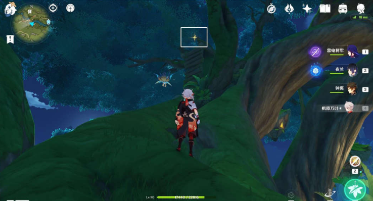 7、朝大树方向走,有风场和四叶印出现,利用这些去到树根。