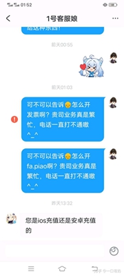 3、然后联系客服申请发票要求,但是“开发票”被屏蔽了,可以使用拼音或者同音字试试。