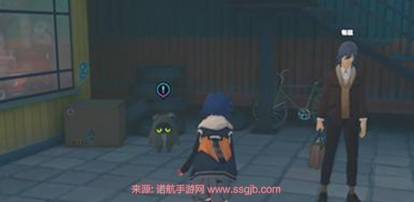 1、先前往下图的位置处,在这里找到两台机器,之后就能够前往录像店与邦布布小小进行对话。