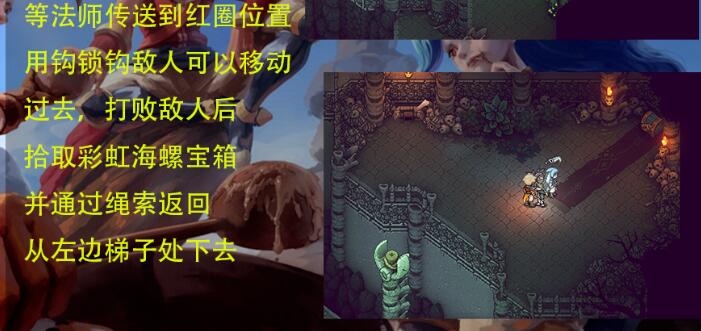 打开宝箱1、首先玩家需要使用钩锁移动到敌人身边然后击败敌人再从左边梯子下去。