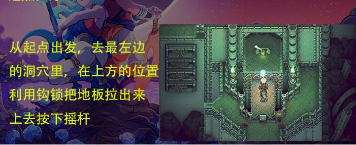 3、然后到最左边的洞穴将地板拉出来然后按下摇杆。