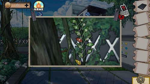 2、玩家从左边树叶密码是上两片树叶相加,红色树叶2+1+3+6=12,黄色树叶17,密码1217。