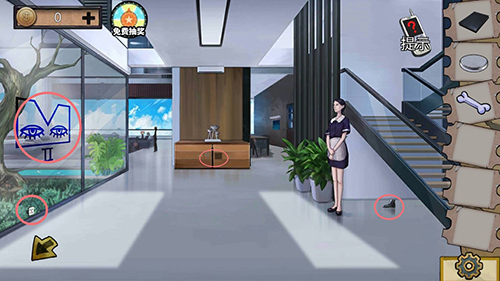 3、等到进入别墅后,从右边鞋子拿到电池和骨头,进入左边客厅。