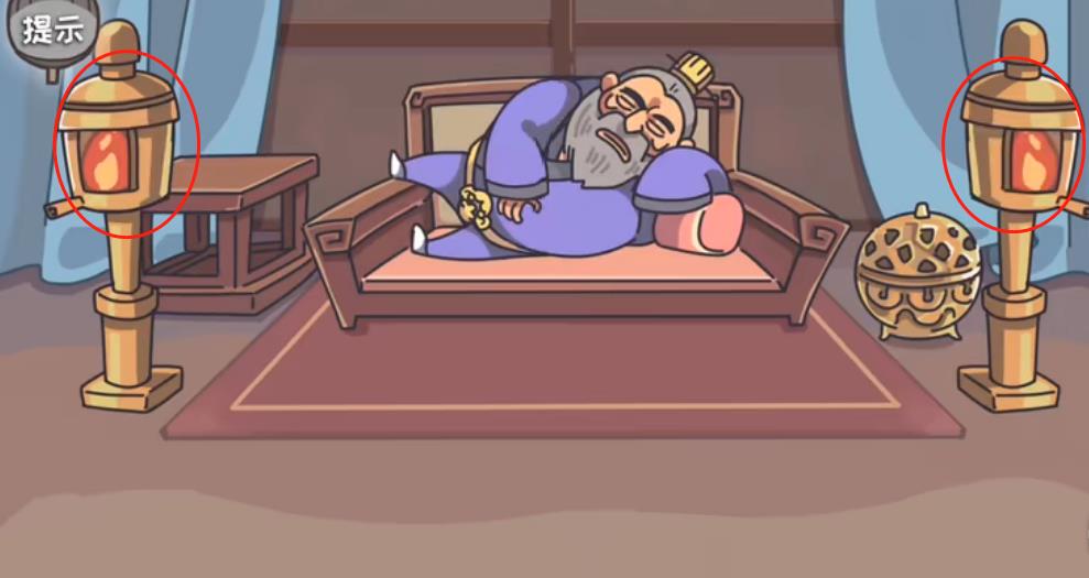 1、首先在曹操拔刀之前按住图片上两边的灯火,使其熄灭。