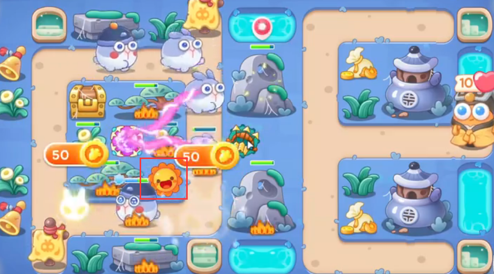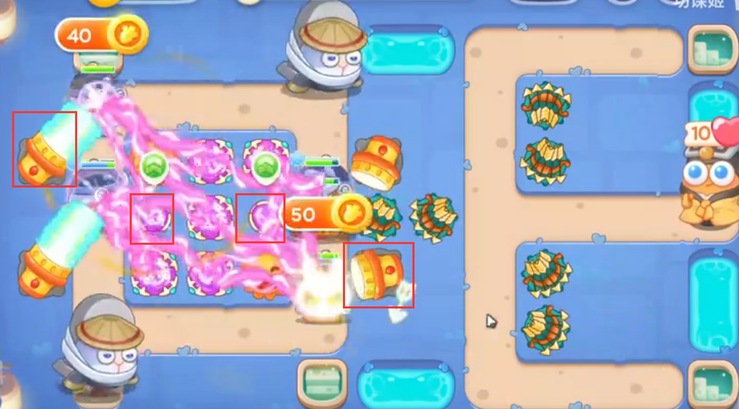 7、左下魔法球满级,道具全清,中间和左下各一个激光塔升级。
